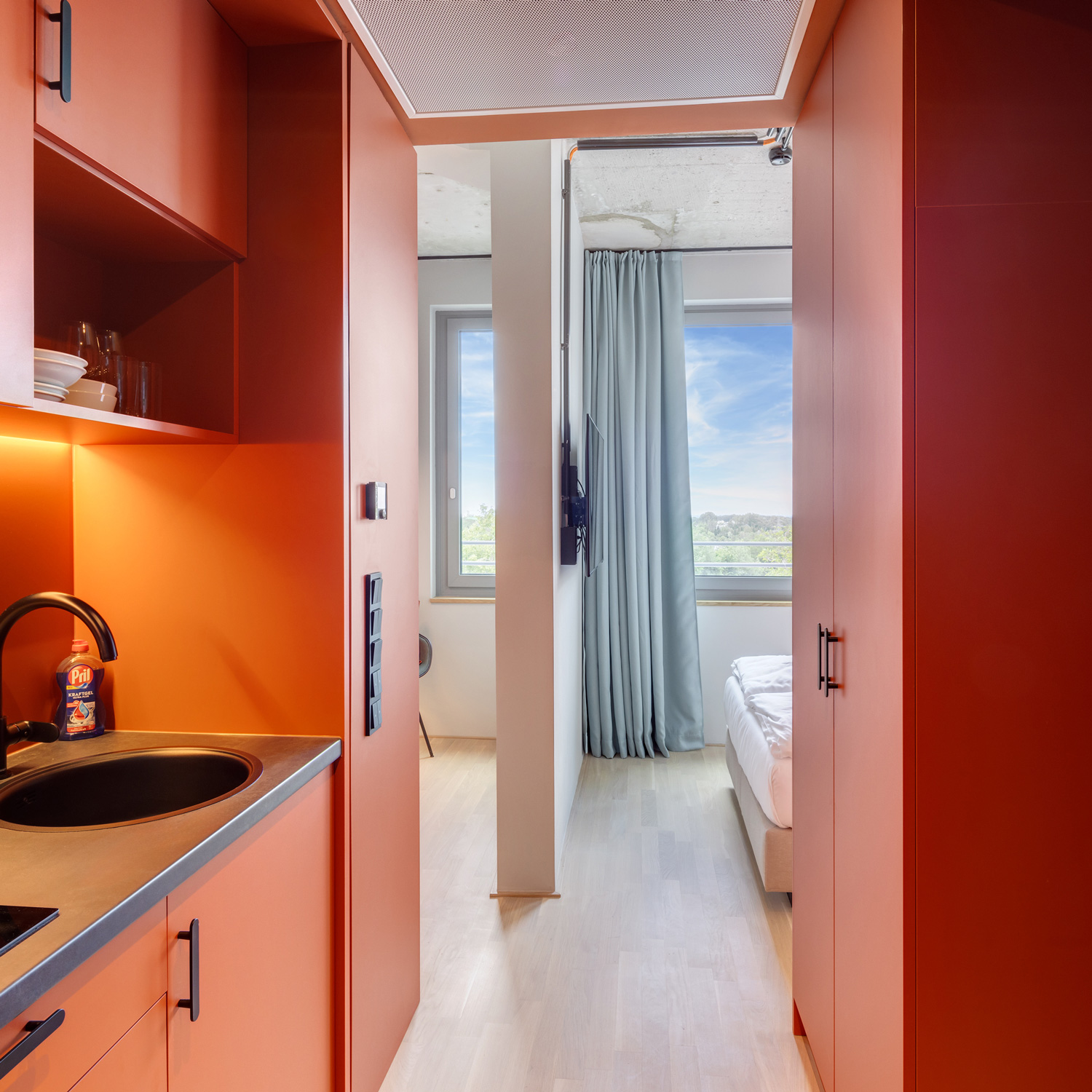 Von der Tiefgarage bis zur Dachterrasse, von der Lounge bis zum Badezimmer trägt MY APART die Handschrift professioneller Projektentwickler und kreativer Designer. Das Resultat sind 17 bis 39 Quadratmeter große Apartments mit einer perfekten Verbindung aus Komfort und Gestaltung.